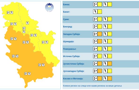 pritokama, na Jadru, Ljuboviđi i Kolubari sa pritokama bez prevazilaženja upozoravajućih nivoa. Na manjim bujičnim vodotocima na ovim područjima moguća su kratkotrajna lokalna izlivanja.