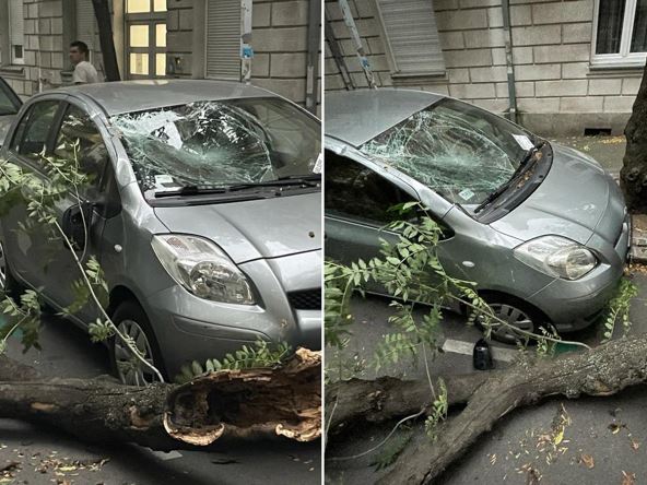 Nakon tropskog dana u kome je u pojedinim gradovima izmereno 40 stepeni, najavljeno snažno nevreme već je stiglo u Srbiju. U Beogradu je zbog snažnog olujnog vetra oboreno drvo na Dorćolu koje je oštetilo parkirani automobil.