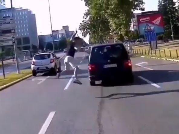 Snimak objavljen na Instagram stranici “NS uživo” šokirao je ne samo Novosađane, već i sve koji su ga videli. Na snimku se vidi mladić koji ide sredinom prometne ulice u Novom Sadu, a onda se u jednom trenutku zaleće, skače i šutira automobil u pokretu!