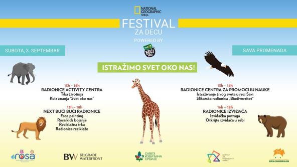 Sada već tradicionalno, časopis National Geographic organizuje edukativne radionice za decu kojima, zajedno sa njima, obeležava početak nove školske godine. U odnosu na prethodne, ove godine su naše radionice prerasle u pravi mali festival koji će trajati dva dana, u subotu i nedelju, 3. i 4. septembra na Sava Promenadi.