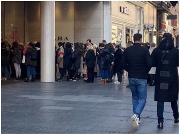 Nepregledni redovi ispred prodavnica i tržnih centara počeli su da se formiraju još od jutarnjih sati, a "pik" je nastupio oko podneva. Iako su neke prodavnice već početkom nedelje potrošače obradovale popustima, najveća sniženja do 70 odsto trajaće samo danas tokom "crnog petka". Na Instagramu se pojavila fotografija nepreglednog reda željnih kupaca uslikana ispred butika jedne poznate modne marke.