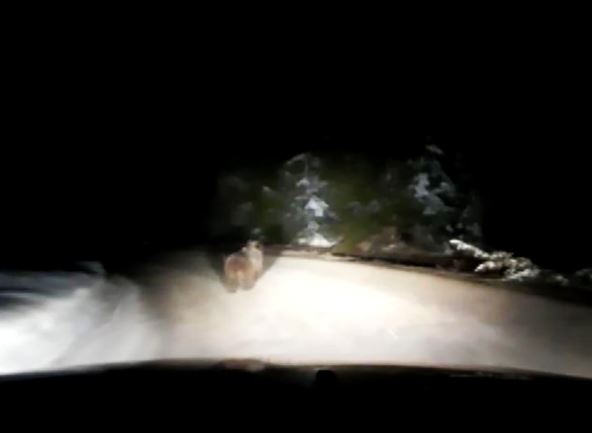 "Vraćali smo se sa porodičnog slavlja malo iza ponoći, kad smo ispred nas ugledali životinju kako trči. U prvi mah smo pomislili da je u pitanju možda lisica ili pas, al kad smo prišli videli smo da se radi o medvedu", objašnjavaju Durkovići.