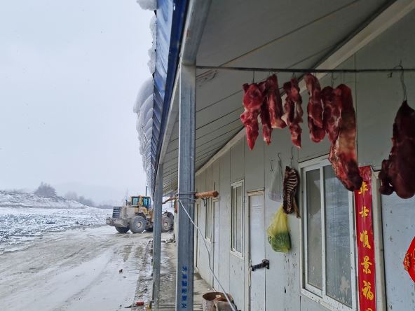 Radnici iz Kine angažovani su na izgradnji auto-puta Miloš Veliki, a od kako su se doselili u radnički kamp u Dragačevu, poprimili su i neke srpske običaje o čemu svedoči i slika ispred ulaznih vrata u kamp, gde radnici na mrazu suše jagnjeće kolenice, butkice i piletinu.