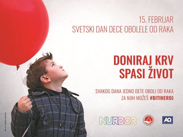 Dođite 15. februara na Trg republike u Beogradu, plato ispred Promenade u Novom Sadu i plato Kalča u Nišu – da svojim prisustvom podržite NURDOR i postanete dobrovoljni davalac krvi.