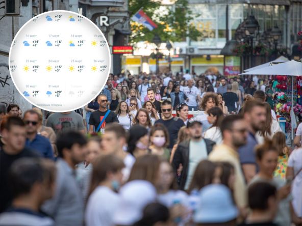 Od 17. marta temperatura će dostići 16 podeok Celzijusove skale. Najtopliji deo marta u Beogradu biće pred sam kraj meseca kad se očekuju temperature iznad 18 stepeni. Poslednji dan marta doneće temperaturu od 20 stepeni. Tokom najvećeg dela marta vreme će biti oblačno. Međutim, jedna nedelja biće potpuno sunčana. Od 20. do 26. marta, prema poslednjim informacija, nebo će biti bez oblaka.