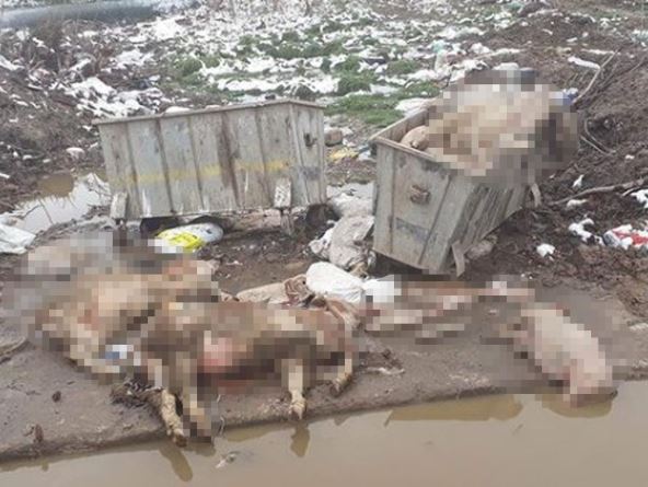 Tela uginulih životinja vide se kraj lokalnog puta u blatu pored kontejnera. Ljudi koji prolaze tuda užasnuti su jezivim prizorima. Fotografije se munjevito šire društvenim mrežama, a komentari se samo nižu.