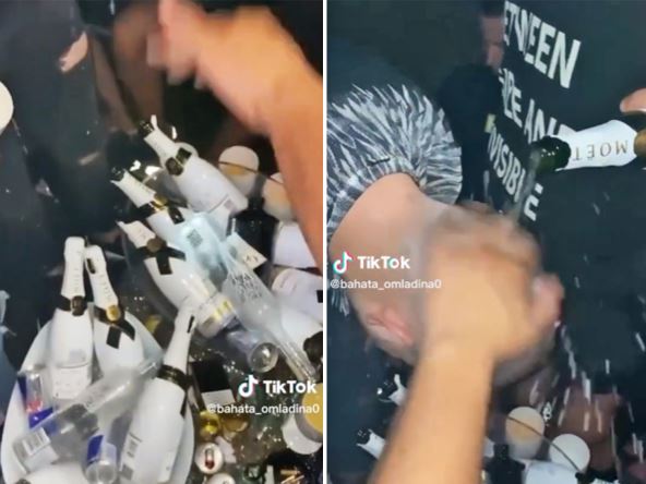 Posebna vrsta snimaka koja svima najviše upada u oči - jeste kupanje u šampanjcu. Kako u kadi, tako je veoma popularno snimati osobu koja se zaliva veoma skupim šampanjcem u separeu pojedinih beogradskih klubova, a neretko se na snimku vidi i kibla u koju je poređano nekoliko flaša šampanjca prestižnog brenda. Nadovezujući se na ovakve bahanalije, ako ćete se polivati skupocenim šampanjcem ili umivati votkom u klubu to ćete i platiti. Tako da se neretko prikazuju i snimci astronomskih računa koji iznose i po nekoliko stotina hiljada dinara.