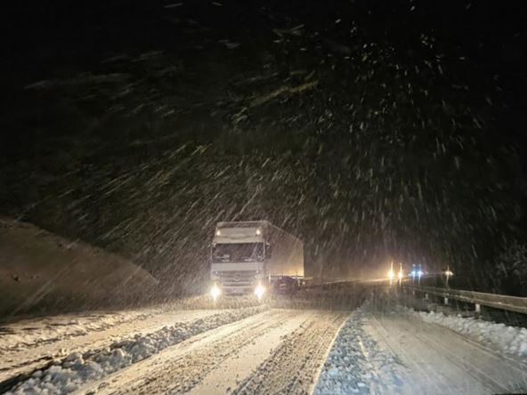 Tokom večernjih sati kiša na Zlatiboru prešla je u jaku snežnu mećavu, a na kolovozu je već formiran snežni pokrivač u visini od nekoliko centimetara.