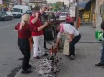Nekoliko Kragujevčana odlučilo je da peče prase na ražnju. I to nije ništa neobično. Nesvakidašnje je što su odlučili da to urade na trotoaru Ulice Stojana Protića u Kragujevcu. Na trotoar su stavili ćumur, stavili su ražanj sa prasetom na njemu i veselili se za 1. maj.
