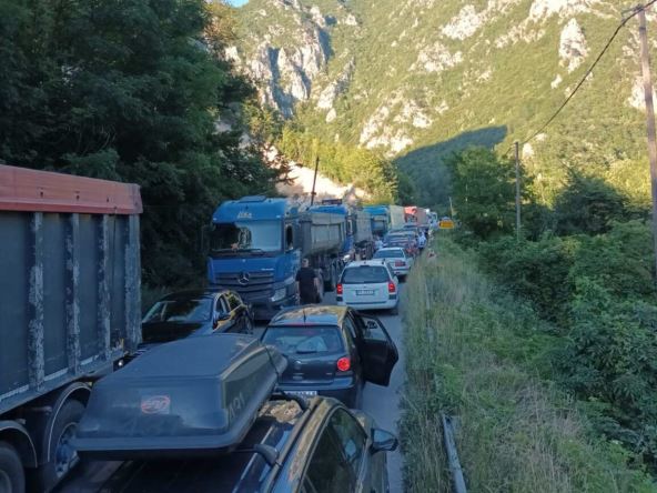 Na graničnim prelazima između Srbije i Crne Gore tokom popodnevnih sati došlo je do kolapsa u saobraćaju. Kilometarske kolone vozila formirane su na Dobrakovu i Gostunu, a vozači čekaju i po pola sata kako bi nastavili put.