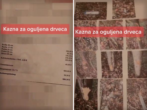 Kako je navela: "Kazna od 690 evra mi je stigla pri saobraćajnoj nesreći kada sam automobilom ogulila drveće. Tačno dobijete koliko centimetara, koje drvo i evo slike u boji", rekla je ona. Kako može da se vidi na snimku, ona je dobila kaznu za svako oštećenje drveta ponaosob.