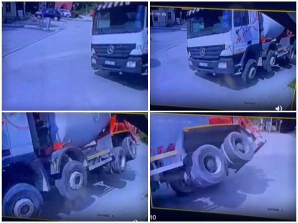Kako se vidi na snimku, kamion je izašao iz krivine i vozač je izgubio kontrolu, pa se teretno vozilo prevrnulo. Kako se čini, vozač je vozio brže nego što bi trebalo. Na sreću, nema povređenih lica. "Samo smo čuli: "Beži! Beži!" i videli kako su se radnici razbežali, a onda je puklo kao bomba kada je mikser pao na automobile", ispričao je svedok incidenta policiji, piše Informer.