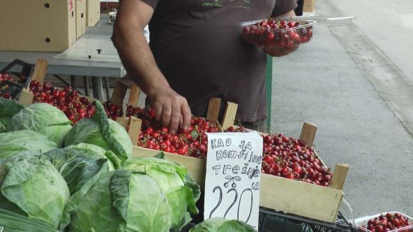 "Cena se je 200 dinara ako kupujete na veliko i gajbu, a do 250 dinara ako se kupuju na kilogram, zavisno sve od kvaliteta i sorte. Trešnje su krupne i slatke, što bi se reklo kao iz komšijinog dvorišta. One koje su sitnije i malo lošijeg kvaliteta su jeftinije. Za trešnjama vlada velika potražnja, jer ovo je njihovo vreme", kaže za RINU Saša Ćendić prodavac na čačanskoj pijaci.