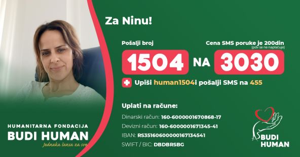 Kako bi Nina što pre nastavila sa lečenjem potrebna joj je pomoć svih ljudi dobre volje u vidu donacija.