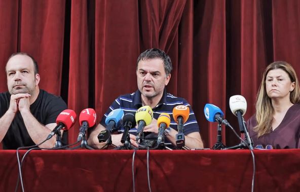 Konferencija je organizovana zbog raznih informacija koje su plasirane u javnost u proteklih nekoliko dana o gostovanju Sarajevskog ratnog teatra SARTR na Teatar festu i skidanju zastave za zgrade Narodnog pozorišta RS. U jednom trenutku novinar RTRS-a je upitao da li smatraju opravdanim reakcije udruženja proisteklih iz proteklog rata kojima je sporno učešće Sarajevskog ratnog teatra (SARTR) na Teatar festu “Petar Kočić”.