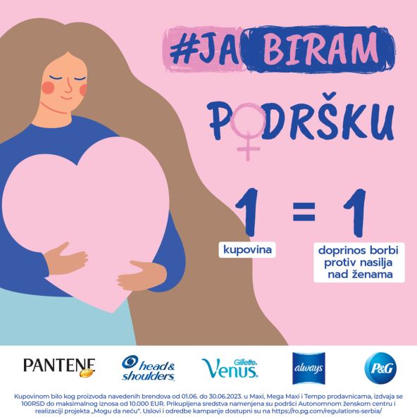 Ukoliko i vi želite da pomognete u podizanju svesti o ovoj važnoj temi, možete to učiniti kupovinom bilo kog proizvoda navedenih brendova do kraja juna u svim Maxi, Mega Maxi, Tempo i Shop&Go prodavnicama širom Srbije. Od svakog kupljenog proizvoda, kompanija Procter&Gamble izdvojiće po 100,00 RSD do ukupne sume od 10.000,00 EUR, a prikupljena sredstva namenjena su podršci za realizaciju projekta „Mogu da neću – Ljubav nije nasilje“ „Autonomnog ženskog centra“.