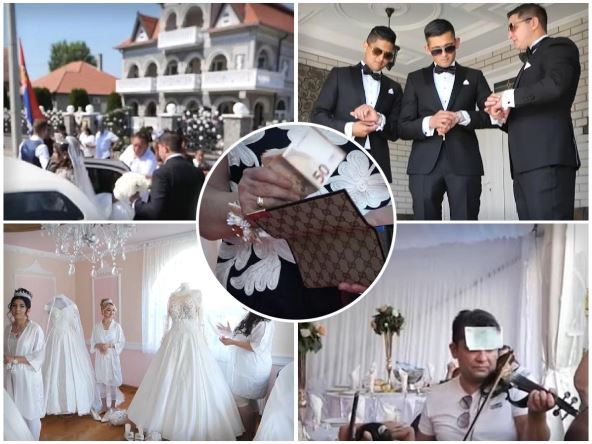Raskošne venčanice za dve snajke i unuku, luksuzna bela šatra ukrašena hiljadama cvetova, skupi servisi, escajg, a ni za muziku se nije žalilo, muzikantima po čelu niko nije lepio manje od 50 evra! Tu se istakla i baba koja je za muziku spremila punu torbicu evra, sve po 50, da se veseli, naručuje i čašćava! Ima, kaže, i nešto danskih kruna, sve lepe i nove, jer stare novčanice ne voli.