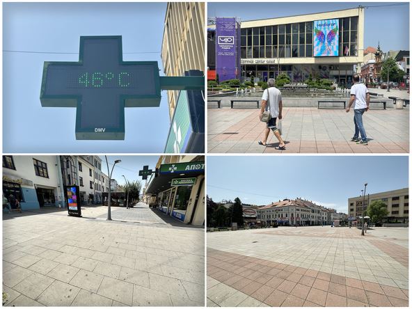 "Ljudi koji su danas prošli pored radnje i u nju ušli mogli su se izbrojati na prste jedne ruke. Ovde sam zaposlena preko deset godina i ne pamtim da je ikada izmerena ovolika temperatura u centru grada, juče na tom istom termometru prikazano je da je napolju čak 51 stepen“, kaže radnica zaposlena u butiku na glavnom trgu.