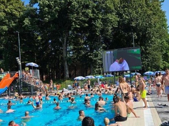 Hit slika podeljena je danas na društvenim mrežama, a mnoge je oduševila. S obzirom na to da je skoro 40 stepeni, građani Lučana su otišli da se rashlade na javnom bazenu, ali ono što je raspametilo jeste da su vlasnici bazena postavili projektor kako bi svi mogli da gledaju Novaka Đokovića.