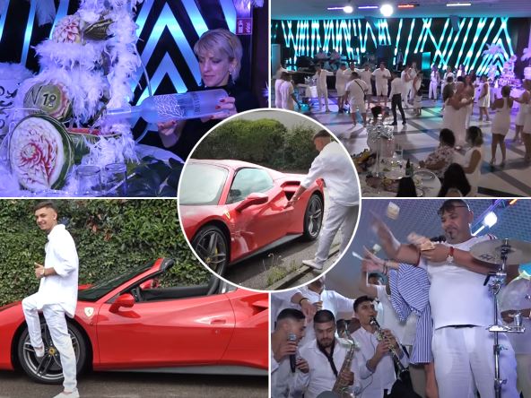 Moguće je videti da pare "lete" na sve strane, a nije se štedelo ni na hrani, niti na skupocenom piću. Snimci koji su objavljeni su visoke produkcije, a neki kadrovi snimljeni su i dronom. Proslava je protekla u najboljem redu, uz muziku, piće i tortu u obliku "ferarija", a naravno novčanice su padale i po podu.