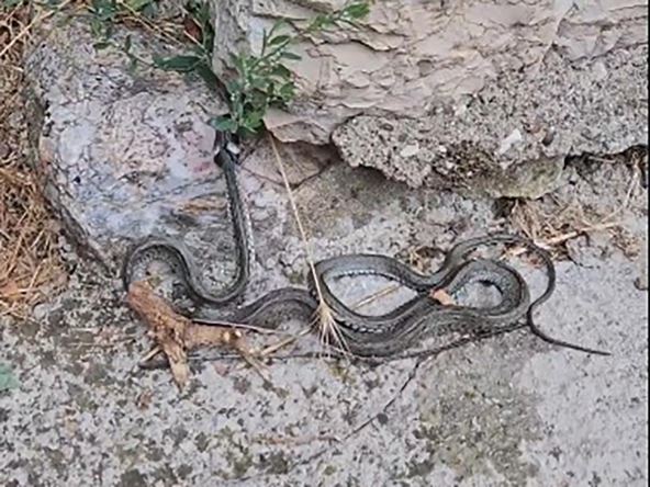 Na plaži u Užicu zatečena je jedna tanka i ne tako kratka zmija, a kako se navodi na snimku, u pitanju je belouška. Okolo, kako se vidi, nije bilo nikog. Zmija se skupčala na steni, pokušavajući da se ugreje na oskudnom suncu, a potom je pokušala da odgmiže između dve stene.