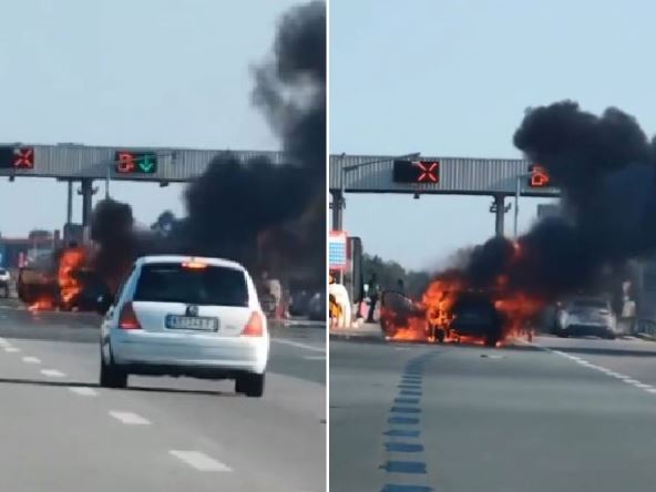 Na naplatnoj stanici Stara Pazova, u smeru ka Beogradu, izgoreo je automobil.