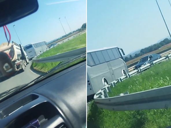 Snimak je objavljen na Instagram stranici 192_rs. Na njemu se vidi automobil u kontrasmeru, a ispred njega se nalazi kamion. Vozač automobila počeo je da vozi u rikverc jer nije mogao da prođe u suprotnom smeru. Za sada nema informacija da li je vozač namerno ušao u kontrasmer ili je pogrešio.