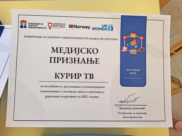 Naša Kurir televizija jedina je kablovska televizija koja je dobila ovo priznanje.