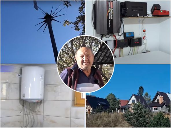 da je Mustafa sebi postavio zadatak. "Idem da napravim nešto, da imam televizor, bojler, veš mašinu, ali najvažnije mi je bilo da napravim lift, jer ne mogu da se popnem stepenicama, bole me noge. Napravio sam i lift, ali zimi nije bilo struje. Onda sam napravio vetrenjače. Tako je to funkcionisalo. Imam sve", rekao je Mustafa. To je bosanska mudrost, ali vetrenjače su iz Amerike, a Mustafa kaže da se i ovde mogu kupiti i napraviti.