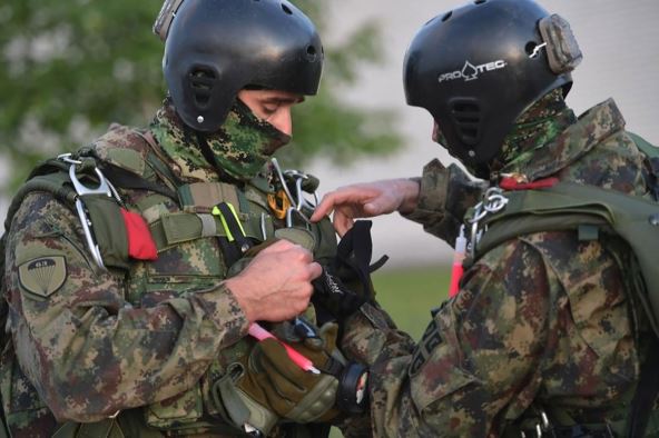 - Najvažnija je padobranska obuka, koja započinje uvežbavanjem pakovanja padobrana, luping-lestvama, trambolinom, skokom sa žičare na padobranskom poligonu, a završava se prvim desantnim skokovima i dobijanjem zvanja padobranca