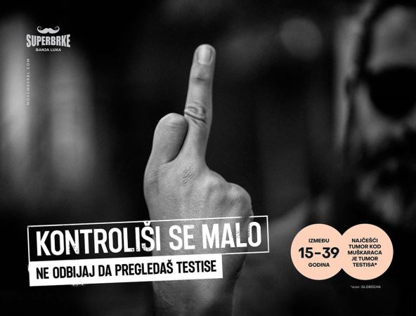 Bilbordi sa esplicitnim fotografijama i porukom „kontroliši se malo“ upućeni svim muškarcima! Novembar je mesec muškog reproduktivnog zdravlja i baš tim povodom, advertajzing agencija Ovation, u partnerstvu sa udruženjem Superbrke iz Banja Luke, pokrenula je ovu šokantnu kampanju kako bi podigli svest o kanceru testisa.