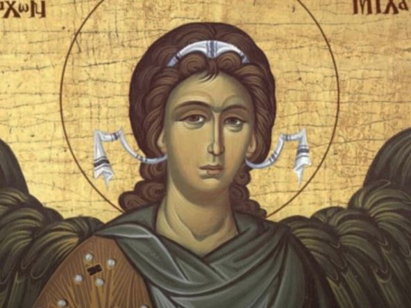 Prema crkvenom predanju, Arhangel Mihailo je prvi stupio u borbu sa zlim duhom i njegovo ime po crkvenom tumačenju označava onog koji je kao Bog. Na grčkom jeziku reč "arhi" znači glavni, prvi, dok reč "angelos" označava vesnika, anđela. Arhangel Mihailo je na ikoni predstavljen kao borac, sa mačem ili kopljem u ruci.