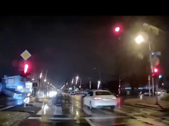 Zastrašujući snimak stiže iz Novog Sada, na kom se vidi da vozač belog "audija" kako u punom gasu prolazi na crveno. Pukom srećom i pažnjom drugih vozača, izbegnuta je tragedija.