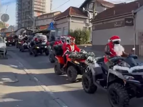 Ukrašeni kvadovi, momci i devojke obučeni u kostime Deda Mraza, prodefilovali su beogradskim ulicama noseći paketiće kako bi deci ulepšali seznonu predstojećih praznika.