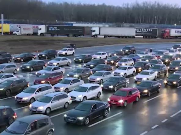 Gužve su na graničnim prelazima sa Mađarskom počele već tokom noći. U proteklih 12 sati u Srbiju je preko graničnog prelaza Horgoš ušlo 9.000 putnika u 35 autobusa i 3.500 putničkih vozila.