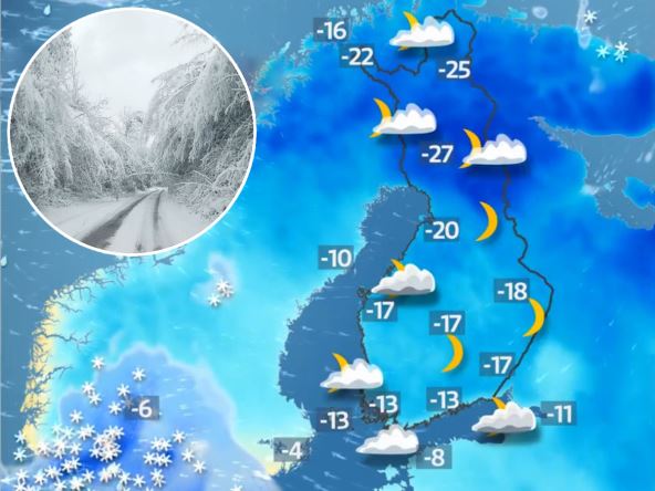 U Finskoj, rekordno niska temperatura zabeležena je u gradu Jlivijeska sa -37,8 stepeni. Arktička Laponija takođe je iskusila temperature niže od -30 stepeni. Helsinki, glavni grad Finske, suočava se s intenzivnim hladnim talasom, očekujući se da će temperatura tokom nedelje biti između -15 i -20 stepeni.