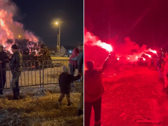 Veliki broj meštana se okupio. Tokom paljenja badnjaka, grupa momaka upalila je baklje.