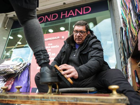 "Ja sam kao centar za socijalni rad. Na primer, dolaze ljudi i dok im ja čistim cipele šalimo se, pričamo o problemima sa ženom i decom", rekao je Mujo.