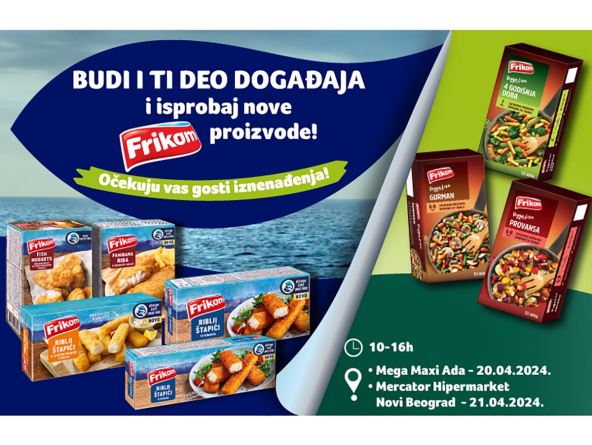 Ovo je jedinstvena prilika da probate Premium riblje štapiće, Paniranu ribu u hrskavoj panadi, Fish nuggets-e, Riblje štapiće u zlatnoj panadi, ali i da upoznate Miru i Slobu i možda baš saznate koji su njihovi favoriti među sjajnim novitetima. Dvojac iskusnih gurmana misli i o savršenom prilogu uz ribu, pa će sigurno i vas navesti na razmišljanje koju ćete od začinjenih mešavina izabrati - Provansu, Gurman i 4 Godišnja doba, ili Extra tanki pomfrit. Međutim, to nije sve što stiže, jer će Mira i Sloba da vam predstave i savršene zalogaje za celu porodicu, a to su novi Frikom proizvodi iz asortimana testa, koje možda do sada niste ni imali priliku da probate - Rolnice Mexicana, Rolnice sir spanać, Mini rolls sir spanaći i Mini rolls sir pileća prsa.