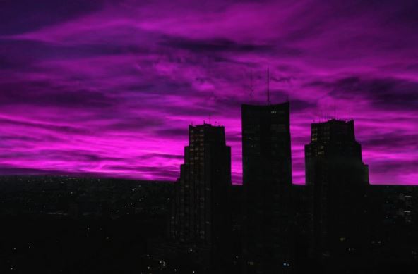 Prema tvrdnjama očevidaca, oko 2 sata ujutru prvi put je primećena promena na nebu, a kako je svitalo, nebo je postajalo sve ljubičastije. Mnogobrojne fotografije ovog nesvakidašnjeg fenomena preplavljuju društvene mreže od ranih jutarnjih časova.