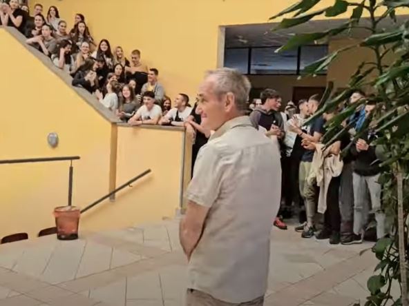 Prilikom ulaska u školu, doživeo je doček kakav nije mogao da zamisli ni u najluđim snovima. Učenici i kolege su ga pozdravili ovacijama i gromoglasnim aplauzom.