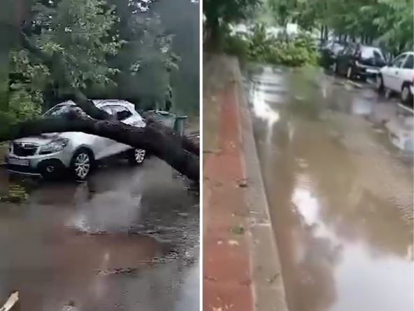 Na društvenim mrežama osvanuli su snimci nevremena. Na "Instagram" profilu "192_rs", vidi se da je pričinjena velika materijalna šteta na jednom džipu na koje je palo drvo u Kostolcu.