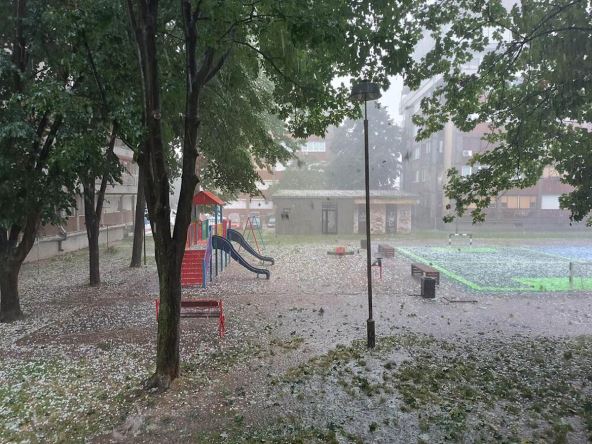 U centru grada padao je jak grad. Na "Instagramu" se vide vozila koja su potpuno "pobelela", neka su navodno i imala materijalnu štetu.