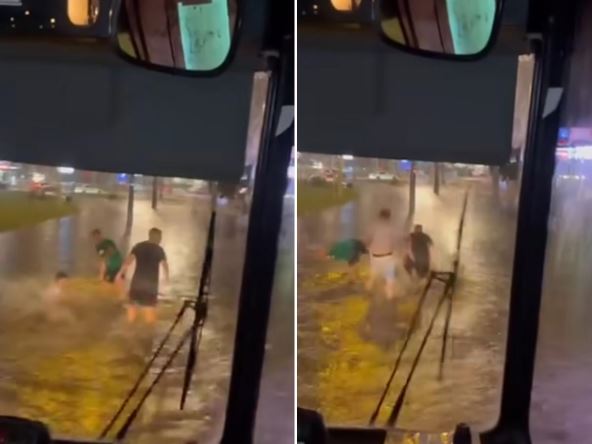 Na "Instagram" profilu "Moj_Beo_Grad" pojavio se snimak trojice maloletnika koji se "kupaju" na poplavljenoj Autokomandi. Ulice su pod vodom, saobraćaj jedva ide, a oni su napustili autobus u kojem su bili i trčali su ispred vozila gradskog prevoza dok kiša pljušti i pucaju gromovi.