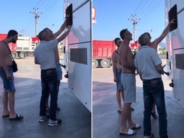 "Povratak iz Turske na plus 40 stepeni. Na snimku možete videti jednog od putnika koji pokušava da popravi klimu", navodi se u opisu videa koji je objavljen na nalogu pod nikom "Petra2535".