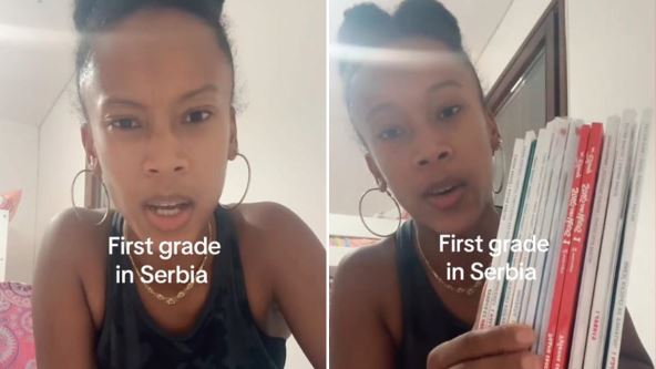 U snimku, koji je za kratko vreme postao viralan, ona je podelila svoje iznenađenje količinom udžbenika koje je njeno dete dobilo na početku školske godine u Srbiji.