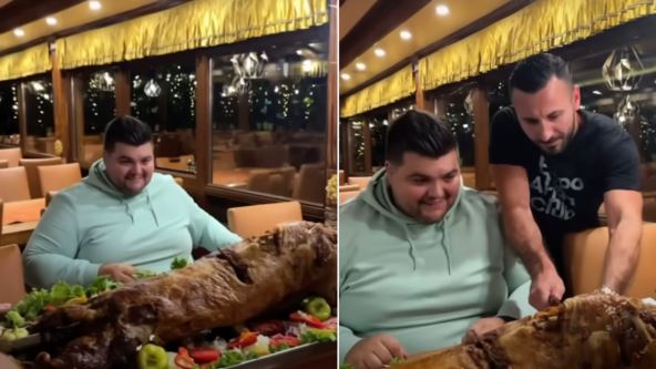 U jednom sarajevskom restoranu "Kod Brajlovića" pojeo je jagnje koje je u komadu bez glave, servirano ispred njega (pogledajte video ispod):