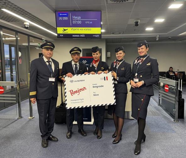 Er Srbija je danas, letom JU250, nakon pet godina pauze ponovo uspostavila direktnu avio-liniju između Beograda i Nice. Do tog grada na jugoistoku Francuske, srpska nacionalna avio-kompanija leti dva puta nedeljno, četvrtkom i nedeljom, a let traje oko dva sata.