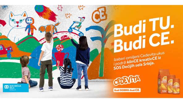 U kampanji Budi TU. Budi CE. Cedevita je odlučila dati glas deci iz SOS Dečijeg sela Srbija kroz prethodno spomenutu kreativnost. Na kreativnim radionicama, deca SOS Dečijeg sela Srbija osvojila su nas svojom vedrinom, znatiželjom i umetničkim pristupom i dokazala da se u svakom detetu skriva maleni kreativac. Odabirom omiljenog Cedevita ukusa i građani mogu podržati klinCE kreativCE iz SOS Dečijeg sela Srbija, a dodatno se mogu inspirisati na edukativnoj platformi budidobrobudice.com.