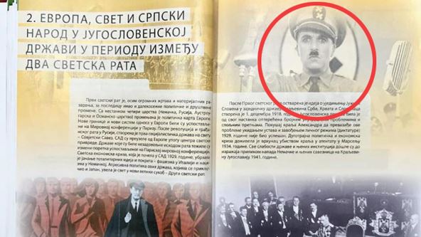 U udžbeniku istorije za osmi razred, izdavača "Bigz školstvo", umesto fotografije Adolfa Hitlera stavljen je Čarli Čaplin iz kultnog filma "Veliki diktator"! Roditelji su, u najmanju ruku, šokirani ovim propustom, a gaf se masovno šeruje na društvenim mrežama.